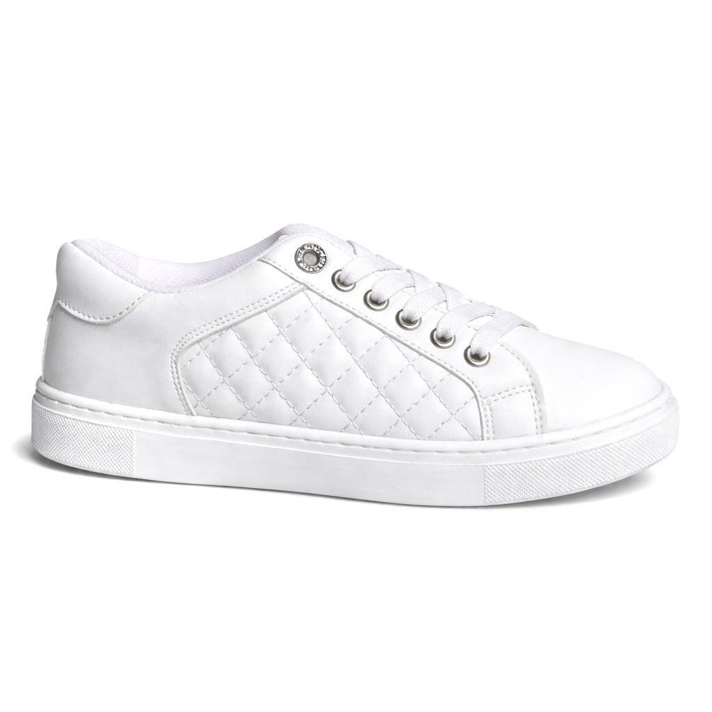 Flat white sneakers with a trendy design and comfy soles, heel height 2 cm Available in 2 colors ( Plain White- Black )